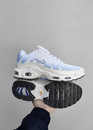 Nike air max tn plus white grey, спортивные кроссовки найк эир макс плюс тн белые с серым градиентом