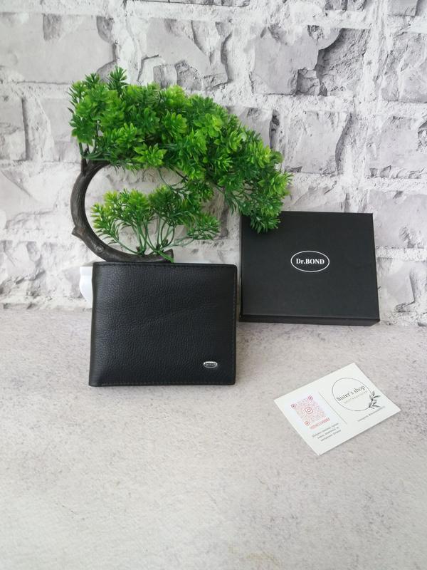 Чоловічий шкіряний гаманець Dr.Bond з замком "магніт". Виготовлений з м'якої натуральної шкіри. Шкіряні перегордки у відділеннях для банкнот. Два відкритих відділення для банкнот і одне відділення на блискавці. 5 закритих кишень для карт, монетниця на блискавці відкидному блоці, під якою є ще 4 кишені для карт. Розмір (див) 11,5*9,5*2,5