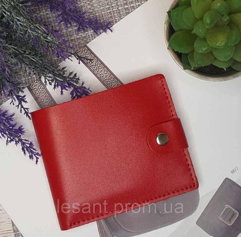 Кошелек женский произведен из качественной натуральной кожи в красном цвете. Благодаря своим небольшим размерам поместится даже в самую небольшую сумочку. Характеристики: 1 отделение для купюр; 2 ячейки для карточек; отделение для монет находится внутри и закрывается на кнопку. Размеры: ширина - 10.5 см; высота - 9 см; высота - 1 см. Произведен в Украине