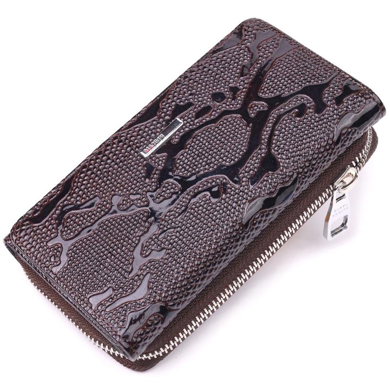 Вместительное женское портмоне из лакированной фактурной кожи karya 21429 коричневый