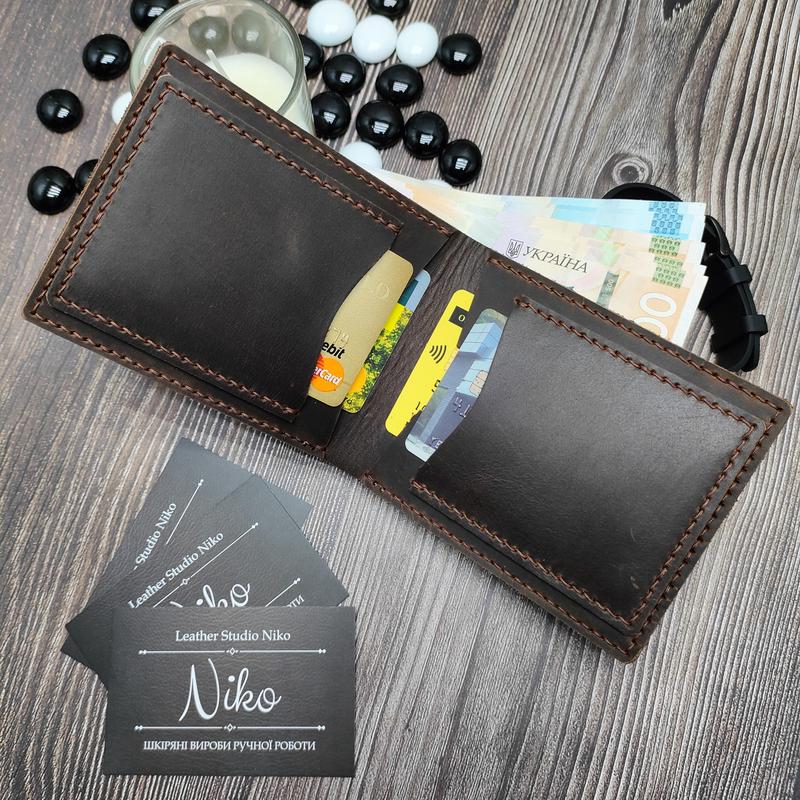 "Классический стиль": Кожаный кошелек ручной работы черного цвета с карманами для купюр и пластиковых карт. Этот кожаный кошелек ручной работы - не просто функциональный аксессуар, это настоящий произведение искусства, которое будет подчеркивать ваш индивидуальный стиль и привлекать восхищенные взгляды окружающих. Характеристики классического стиля: * Высокое качество и долговечность * Ручная работа, что делает каждый экземпляр уникальным * Черный цвет, который подходит к любому образу и не выходит из моды * Карманы для купюр и пластиковых карт, обеспечивающие функциональность и удобство использования * Размер 9*11,5 см, позволяющий легко поместить кошелек в карман или сумку * Привлекательный внешний вид, который подчеркивает индивидуальный стиль владельца и привлекает внимание окружающих * Идеальный выбор для тех, кто ценит качество и стиль, и хочет приобрести аксессуар, который будет служить долго и оставаться в тренде. Условия оплаты: - наложенный платеж (по предоплате 100 грн.) - пром оплата - полная оплата на карту - оплата за индивидуальные заказы оговаривается индивидуально для каждого изделия. Каждый кошелек изготавливается вручную, поэтому он уникален и имеет свой собственный характер. Вы не найдете двух абсолютно одинаковых экземпляров, что делает его еще более ценным. Кошелек имеет размер 9*11,5 см, что позволяет легко помещать его в карман или сумку. Внутри имеется один карман под купюры, а также четыре кармана под пластиковые карты, что делает его идеальным для хранения ваших денег и важных документов. Этот кошелек - идеальный выбор для тех, кто ценит качество и стиль. Он будет служить вам многие годы, не теряя своей красоты и функциональности. Купите себе или в подарок близкому человеку, и вы никогда не пожалеете о своем выборе! Не упустите возможность приобрести этот кожаный кошелек ручной работы и подчеркнуть свой индивидуальный стиль! Нажмите кнопку "Купить" прямо сейчас, и вы получите не только красивый и функциональный кошелек, но и настоящее произведение искусства, которое прослужит вам многие годы. Надеемся, что этот кожаный кошелек ручной работы понравился вам, и вы нашли в нем все необходимые функции и уникальный стиль. Но это еще не все! В нашем магазине вы можете найти еще множество других кожаных аксессуаров, таких как сумки, ремни, кошельки, портмоне и многое другое - все изготовлены вручную из высококачественной натуральной кожи. Каждый аксессуар имеет свой индивидуальный стиль и характер, что делает его уникальным. Если вы ищете что-то особенное и хотите выглядеть стильно и уверенно, то обязательно обращайтесь к нам и мы Вам с этим поможем! Мы гарантируем высокое качество всех наших изделий и их долговечность. Не упустите возможность обновить свой гардероб и приобрести уникальные кожаные аксессуары ручной работы. Заходите к нам в магазин и выбирайте то, что вам по душе!
