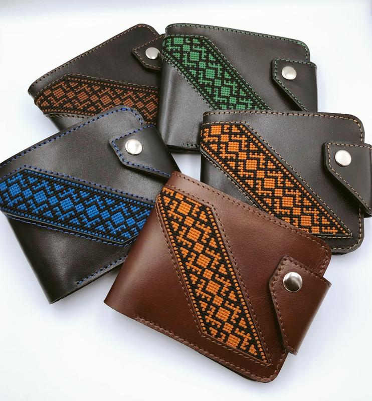 Чоловічі гаманці,шкіряні портмоне,гаманець з орнаментом, гаманець з вишивкою