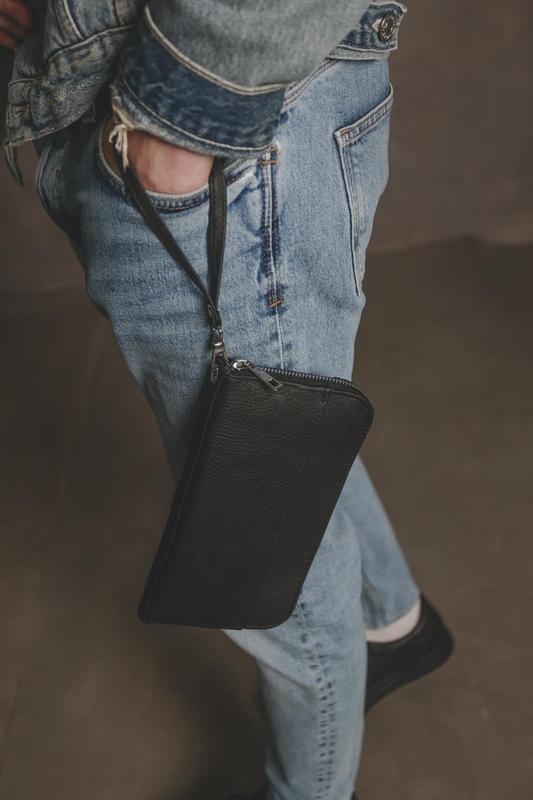 Шкіряний клатч-гаманець із натуральної зернистої шкіри