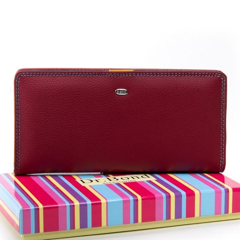 DR. BOND WRN-22 bordo Женский кожаный кошелек Dr.Bond.Складывается вдвое и закрывается на кнопку. Изготовлен из натуральной кожы с естественной текстурой. Внутри находятся три открытых и одно на молнии отделения для банкнот, 15 карманов для визитных карт. Снаружи кошелька на обратной стороне есть карман-монетница на молнии. Размер(см) 19,0*9,5*2,5. Поставляется в коробке.