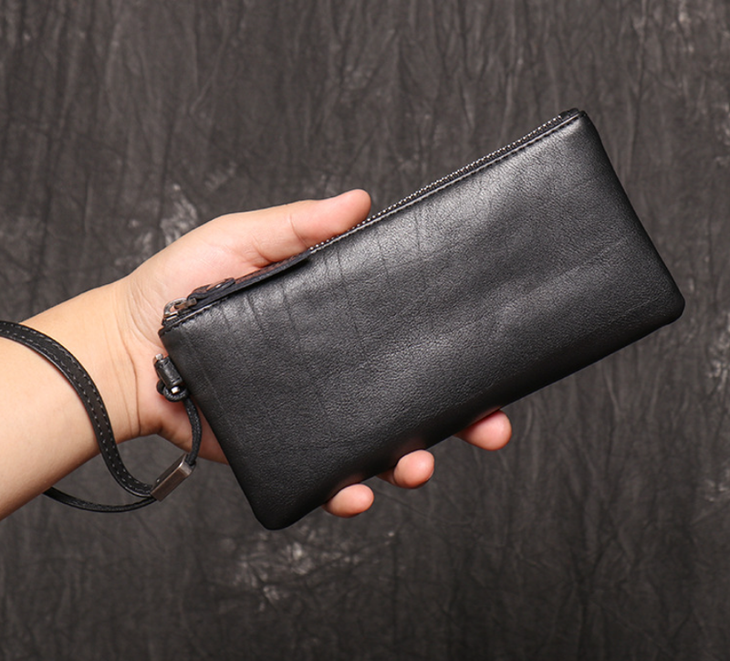 Чоловічий шкіряний клатч гаманець натуральна шкіра, чоловіче чорний портмоне