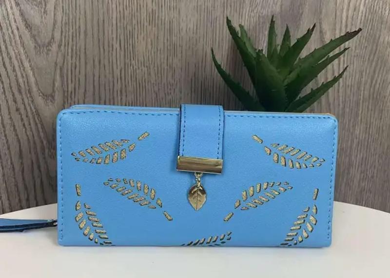 Качественный женский кошелек клатч, модный портмоне для девушек с листочками Характеристики: Материал: экокожа; Ширина: 9,5 см; Товщина: 3,5 см; Высота: 19 см; черный розовый, бежевый, красный,голубой