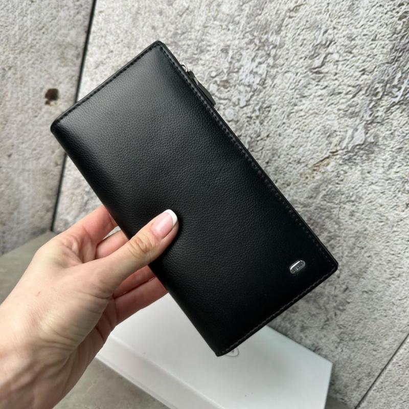 Выполнен из мягкой натуральной кожи. Переднее отделение закрывается на магнитные кнопки. Внутри находятся 12 карманов для визитных карт и один большой открытый карман. Двойное отделение для банкнот с карманом-монетницей на молнии, закрывается на общую молнию. Размер (см) 10*19*3
