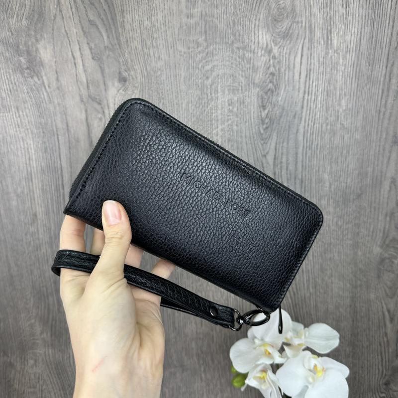 Женский кожаный клатч кошелек на молнии натуральная кожа черный