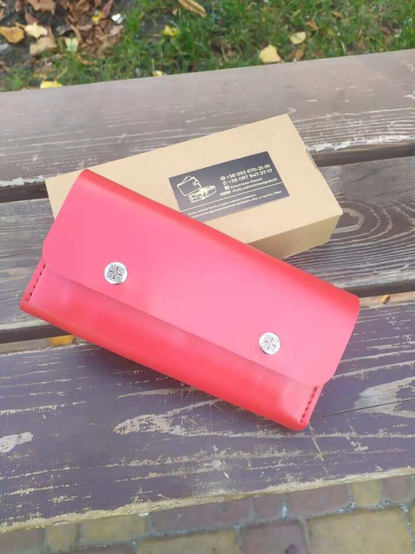 Кілька примірників у наявності Жіночий гаманець. Натуральна шкіра. Виконаний повністю вручну. Шкіра високої якості. Гаманець має: -2 відділу для купюр( можна помістити телефон,та необхідні документи) - 12 відділів для карт - монетниця Розміри даного гаманця 21*11*4 Можна виготовити в будь-якому іншому кольорі.