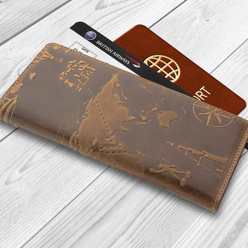 Темно рыжий кожаный бумажник hi art wp-02 shabby cumaru "7 wonders of the world"