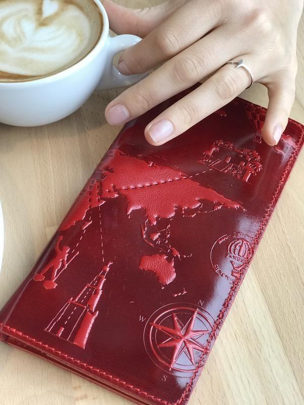 Красный кожаный бумажник hi art wp-02 crystal red "7 wonders of the world"