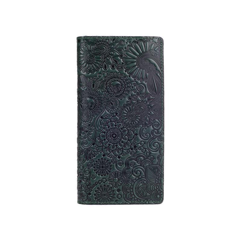 Зеленый кожаный бумажник hi art wp-02 crystal green "mehendi art"