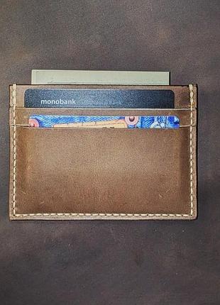 А шо це в нас тут ? А це нова модель картхолдера 🎉🎉 Виконана у мінімалістичному дизайні з преміальної шкіри crazy horse, зріз шкіри оброблений спеціальним кремом і все прошито вощеною ниткою. Ідеально підходить для людей, які не люблять носити з собою нічого зайвого, а тільки необхідні речі. А також такий аксесуар підкреслить ваш стиль і доповнить будь-який образ ) Картходер має: - чотири відділи під карти - один відділ для грошей Час виготовлення один день, тож не зволікай і мерщій робити замовлення !!)) Товар под заказ