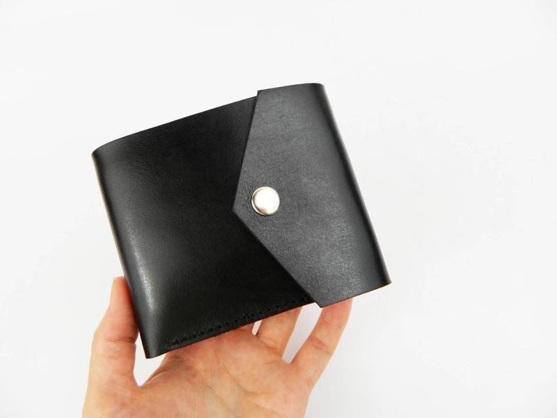 Kошелек имеет одно большое отделение для купюр. Три слота для карт. Отделение для монет. Два отделения для 10 карт. Прошит прочной вощеной нитью вручную. Застегивается на кнопку. Изготовлен из гладкой кожи черного цвета. По тактильным ощущениям кожа приятная на ощупь,имеет слегка глянцевую поверхность. Изделие упаковано в фирменную картонную коробку. Характеристики Материал: натуральная кожа, вощеная нить Размеры: 12 х 9.5 х 2 см Цвет кожи: черный Цвет нитки: черный Застежка: кнопка,никель Особенность : вмещает 13 карт! Артикул: К0601-М Дополнительные характеристики: Пол: Унисекс Цвет : Черный Материал : Кожа Тип: Кошелек двойного сложения Количество отделений для купюр: 1 отделение Тип застежки: На кнопках Размер: Маленький