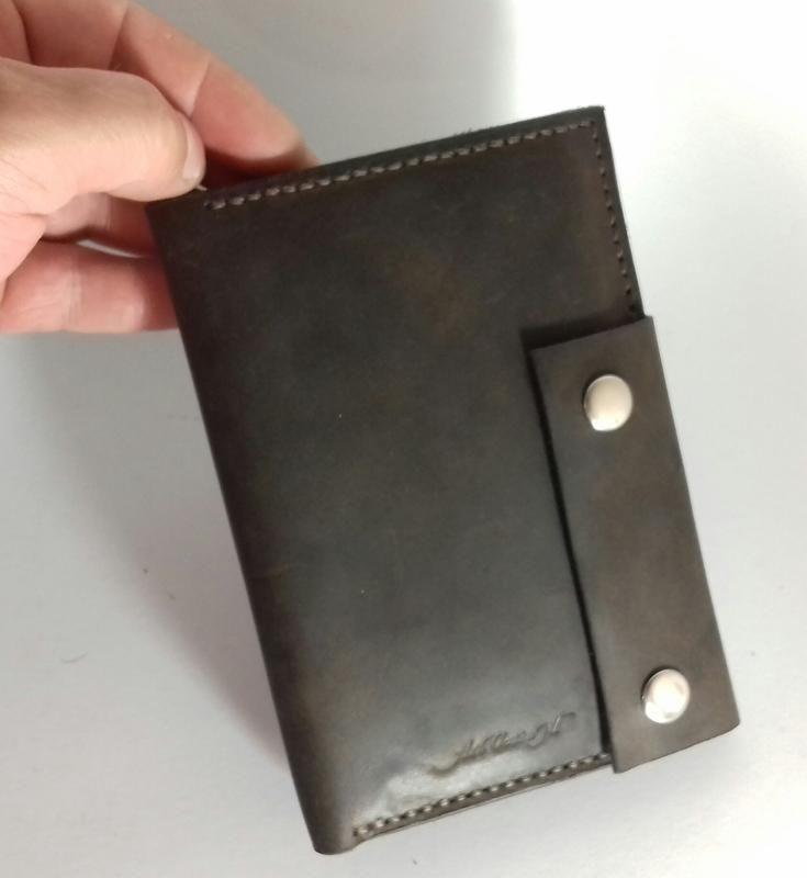 Стильный, надежный, кошелек из натуральной кожи, с клапаном на двух кнопках,одно большое отделение для купюр, два отделение для паспорта, четыре отделения для карт. Полностью ручная работа Дополнительные характеристики: Пол: Мужской Цвет : Коричневый Материал : Кожа Количество отделений для купюр: 1 отделение Тип застежки: На кнопках