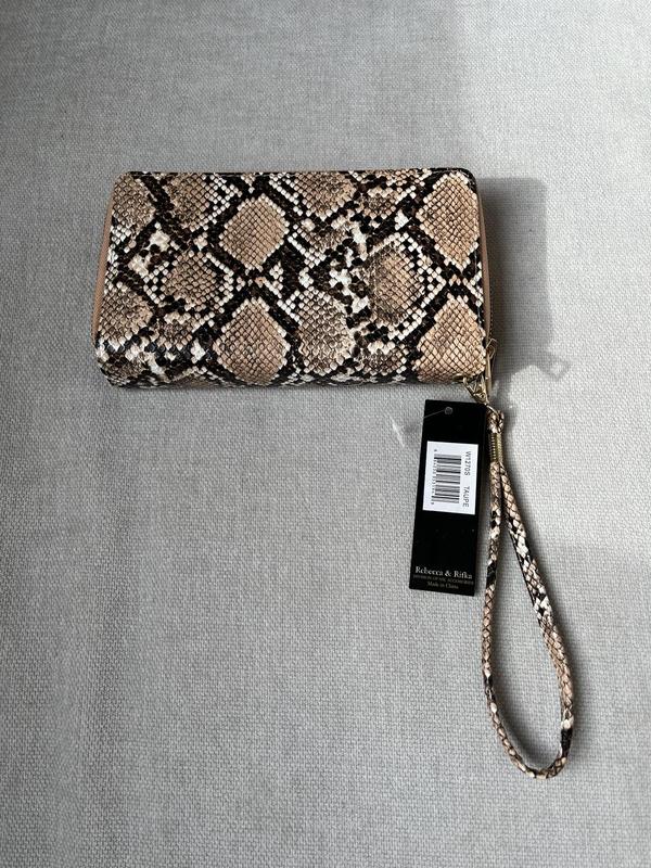Гаманець Rebecca & Rifka Faux Python Snakeskin Double Zip Around Wristlet Wallet Новый. БРЕНД REBECCA & RIFKA: новейшие модные аксессуары для вашей повседневной жизни. Прочные и высококачественные женские аксессуары.