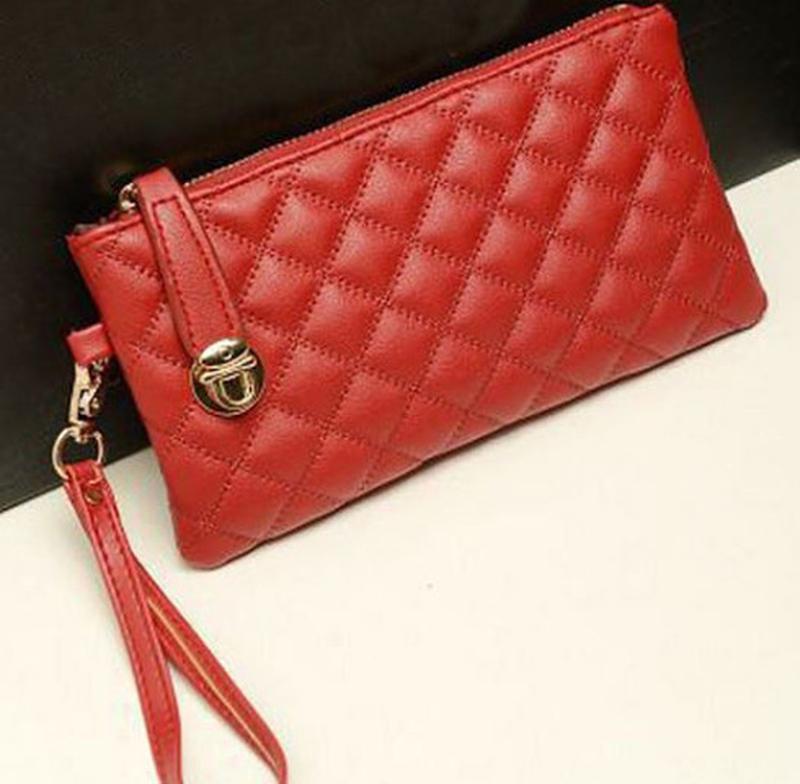 Материал: полиуретан. Застегивается на молнию, имеет короткий ремешок на руку. Внутри одно отделение для купюр и одно для монет. Размер: 10*21см. Немного грязная передняя часть, почти не заметно.