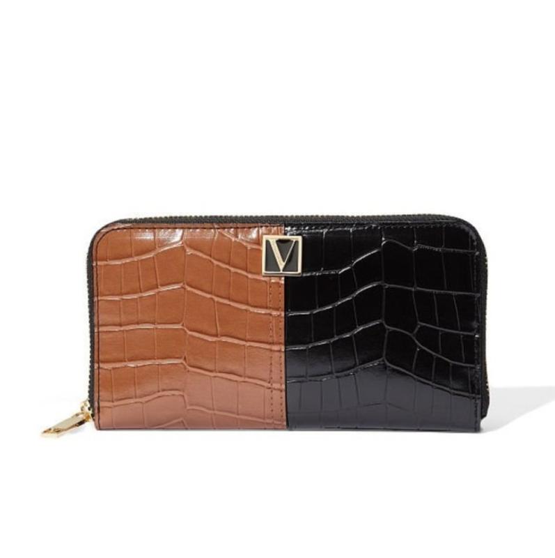 Лимитированная серия из самой новой коллекции Виктория Сикрет Этот стильный кошелек легко поместиться даже в самую маленькую сумку или рюкзачок. Кошелек застегивается на молнию - внутренний кармашек для мелочи и купюр, 12 отделений для визиток. Цвет: черный с кармелью (Croc Colorblock), принт под кожу крокодила, по центру кошелек украшен фирменным логотипом VS. Материал: эко-кожа, невероятно-нежный на ощупь :) вы будете приятно удивлены Размер в см: ширина 20 х высота 11 х глубина 2,5