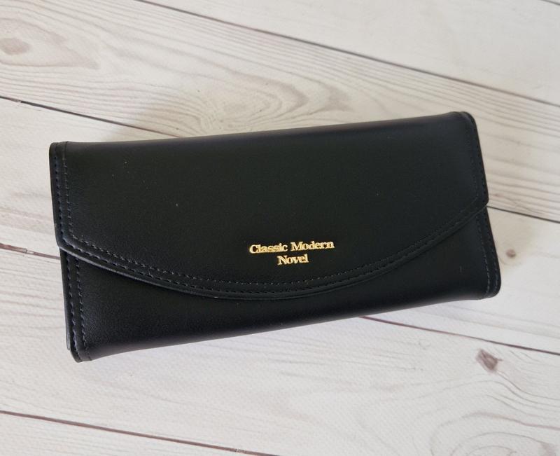 Женский черный кошелек на кнопке
