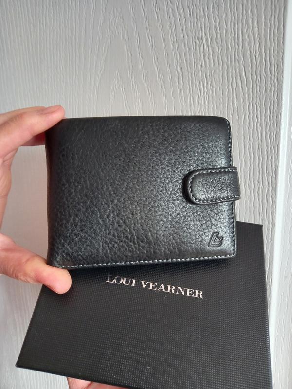Современный мужской кошелек с качественной натуральной кожи. Размер 12х9 см. Кошелек закрывается на волнистых с кнопкой. Внутри 2 глубоких отдела для купюр, 1 отдел на молнии, 4 отдела для карт, 2 отдела скрытого типа, 4 отдела с прозрачным верхом для фото или документов. Монетник на кнопке. Фурнитура качественная, подкладка текстильная брендовая Цвет черный. В комплекте подарочная коробка. На лицевой стороне выдавленный в коже логотип производителя Loui Vearner. Арт. Lou 8081-A.