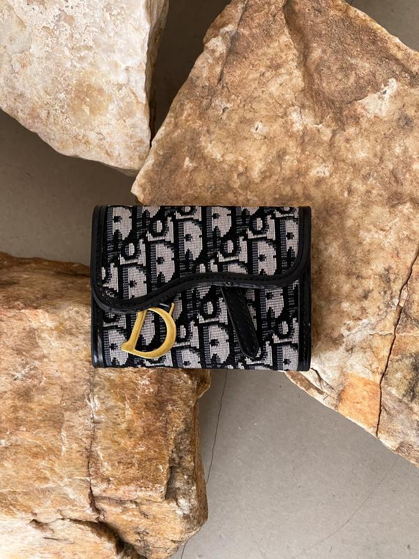 Кольори: черный серый синий светло-серый Материал: эко кожа премиум и текстиль. По фирменному узору можно увидеть, что он уточности передает логотип 1:1. Вишит нитками, не принт. Размер: 12 x 9.5см В раскрытом виде - 24*12см Один отдел для больших купюр, 7 слотов для карт ⭐️Брендовая коробка и пыльник в комплекте
