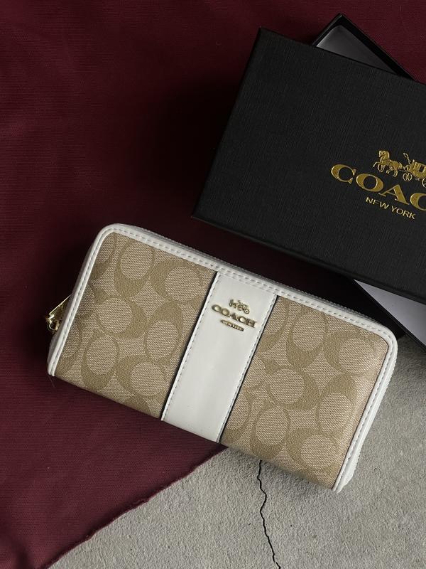 Кошелек большой с полоской Кошелек выполнен из структурной эко-кожи с вставкой из гладкой эко-кожи. Внутри три больших отделения и одно на застежке для мелочей. Также 8 отделений для карточек. Металлическая фурнитура – качественная и брендированная. Размер: 19*10см код: коричневый 20452-1 молочный 20452-2 персиковый 20452-3