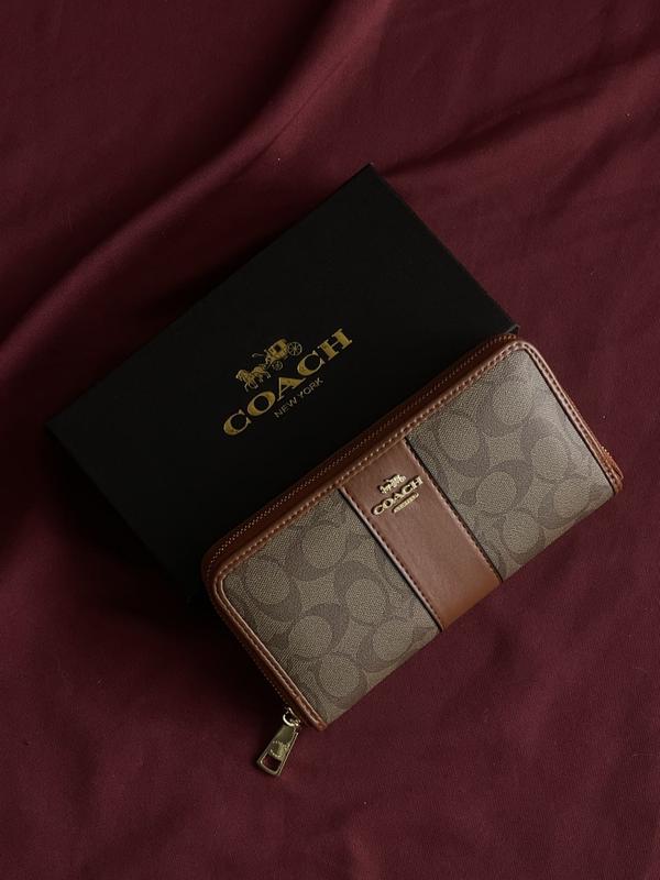 Кошелек выполнен из структурной эко-кожи с вставкой из гладкой эко-кожи. Внутри три больших отделения и одно на застежке для мелочей. Также 8 отделений для карточек. Металлическая фурнитура – качественная и брендированная. Размер: 19*10см. Брендовая коробка и пыльник в комплекте