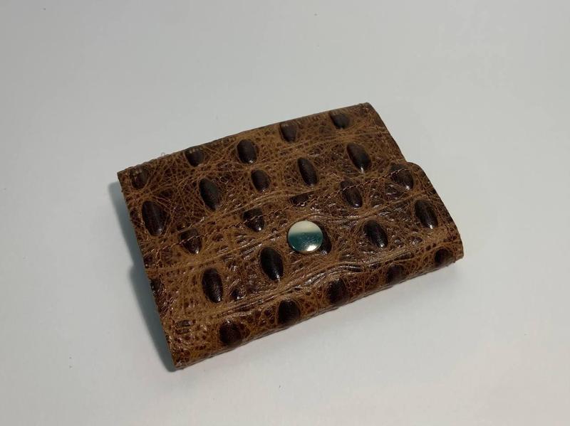 Идеальный вариант хранения нескольких карт и наличных денег для тех кто предпочитает компактность и минимализм. Кардхолдер выполнен из натуральной кожи высокого качества. Имеет два кармана для карт вместимостью 2-3 карты и отделение для нескольких банкнот, и отделение с обратной стороны для монет. Размеры: 7,4 х 10,2 см.