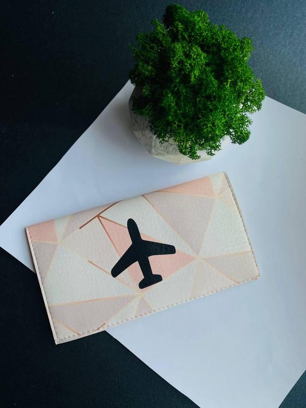 Кошелек ,портмоне,кожа с принтом принт самолет