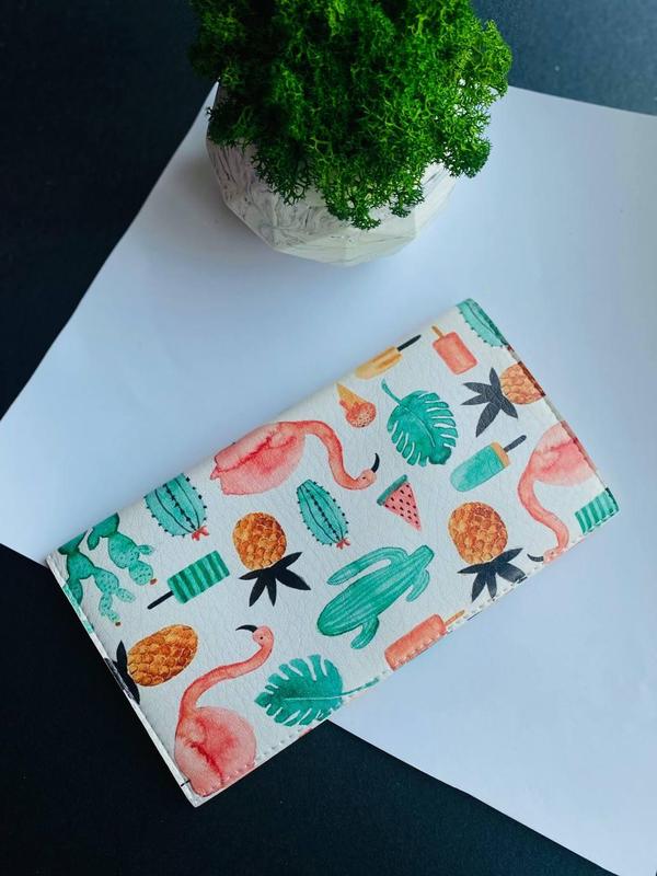 Кошелек ,портмоне,кожа с принтом принт фламинго кактус