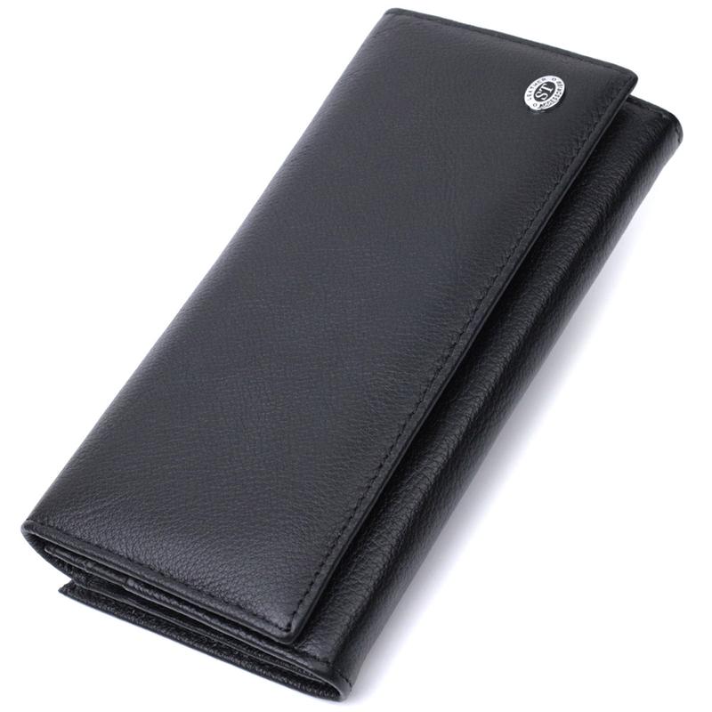 Добротное женское портмоне с карманом для монет из натуральной кожи st leather 22691 черны...