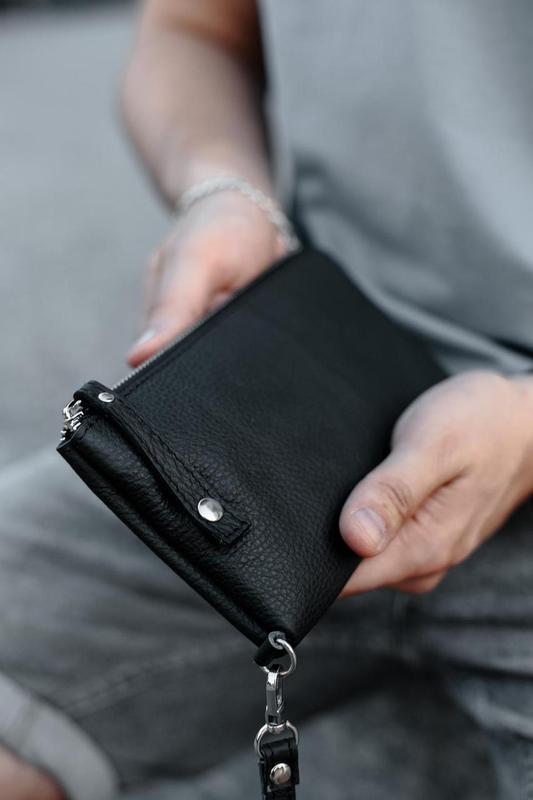 Чоловічий клатч із натуральної зернистої шкіри - це яскравий приклад об'єднання стилю, якості та функціональності. Він вражає своїм оригінальним дизайном та органомічним підходом до використання простору, роблячи його універсальним аксесуаром для чоловіків. Органомічна конструкція забезпечує зручний доступ до грошей, карток та інших необхідних речей. Шкіряний клатч легко поміщається в руці і підходить для будь-якого стилю одягу та ситуації, роблячи його універсальним вибором. СТРУКТУРА: • два основних відділення на одній молнії • кишеня-монетниця на молнії • 2 осередки для карток • одна внутрішня бокова кишеня без застібки • зручна шкіряна ручка для носіння на карабіні ХАРАКТЕРИСТИКИ: - Матеріал: натуральна шкіра КРС - Вид шкіри: зерниста - Тип моделі: клатч-гаманець - Фурнітура: металева - Розмір: (В*Ш*Г) – 11,5см *21см *1см *в закритому стані фіксується металевою кнопкою