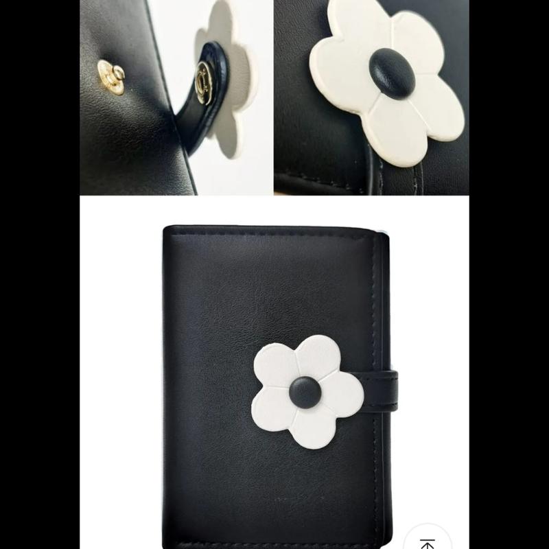 Черный кошелек черно - белый на застежке с белым цветком декоративной украшением ромашкой