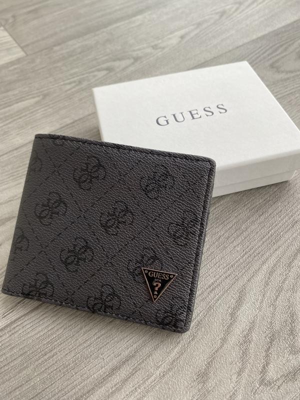 Чоловічий гаманець Guess Стильний і практичний аксесуар від бренду Guess, виготовлений із міцної екошкіри з фірмовим логотипом. Компактний формат ідеально поміщається в кишеню, а продумане внутрішнє наповнення забезпечує зручне зберігання купюр і карток. Металевий трикутний логотип Guess USA надає гаманцю преміального вигляду. Постачається у фірмовій подарунковій коробці.