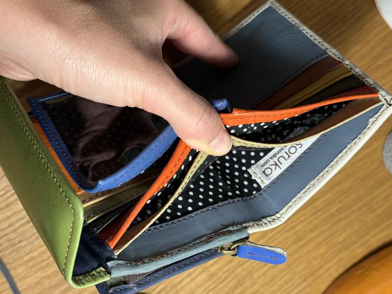 Стан ідеальний. Привезла з Барселони собі, але мені завеликий, не поміщається у сумочці з іншими речима. Є 2 відділи для купюр та відділи для карток, прав, посвідчень, а також замочок для копійок. Дуже класний іспанський бренд, ручна робота. Двох однакових речей в цього бренду немає. Особливий аксесуар - нехай втішить того, хто цінує щось особливе. Ціна була 50 євро, продаю за 1500 грн.