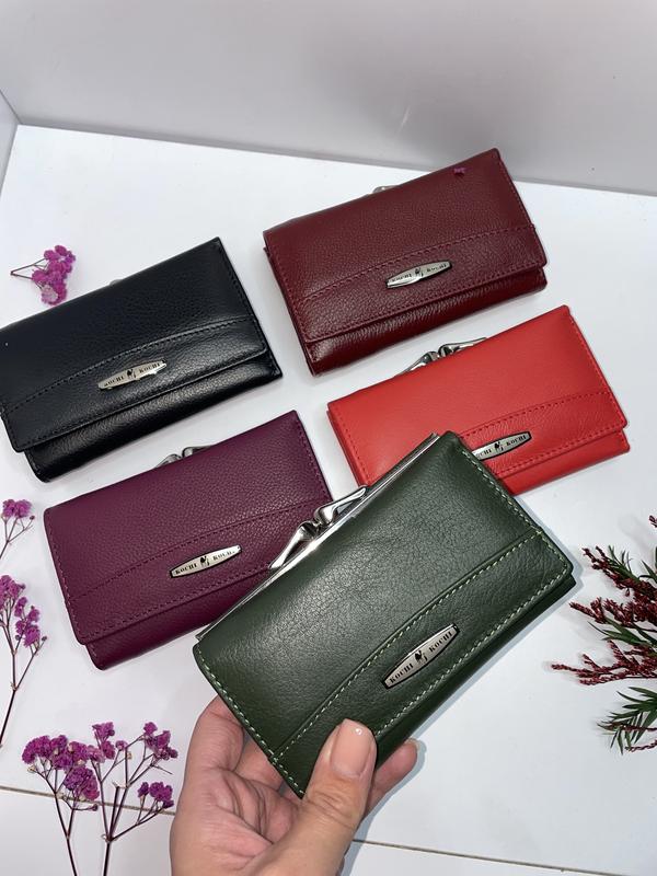 Стильні жіночі гаманці з натуральної шкіри! 👜 Компактні, зручні та елегантні. Розмір 13*8,5 💰 З окремою металевою монетницею — зручно тримати дрібні гроші. 🔹 Всередині — відділення для карт і купюр. 💫 Універсальні кольори: чорний, бордовий, червоний, фіолетовий і зелений. 🌸 Ідеальні для щоденного використання або на подарунок!