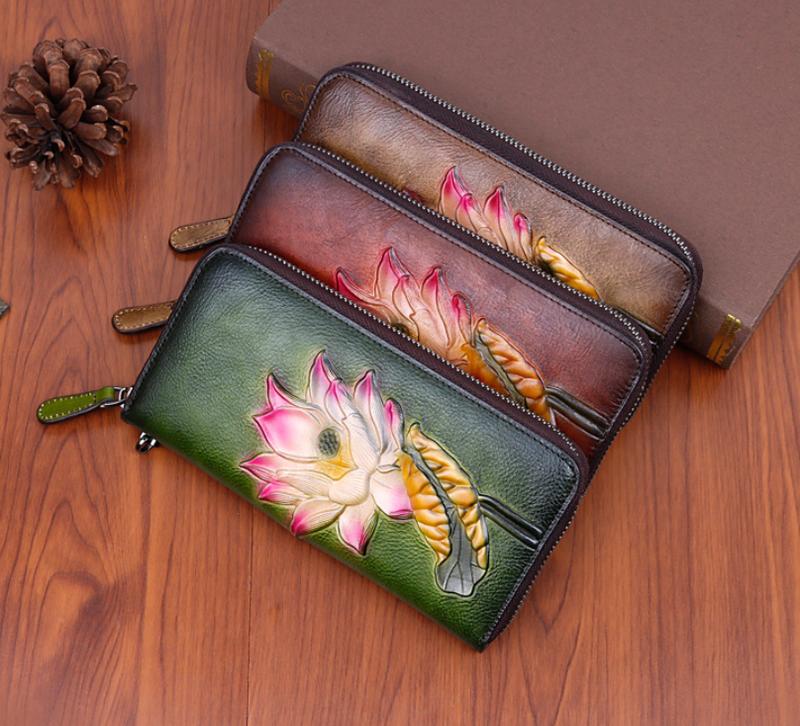 Женский кожаный кошелек с тиснением, клатч из натуральной кожи