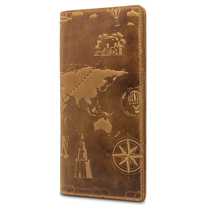 Красивый рыжий кожаный бумажник, коллекция "7 wonders of the world"