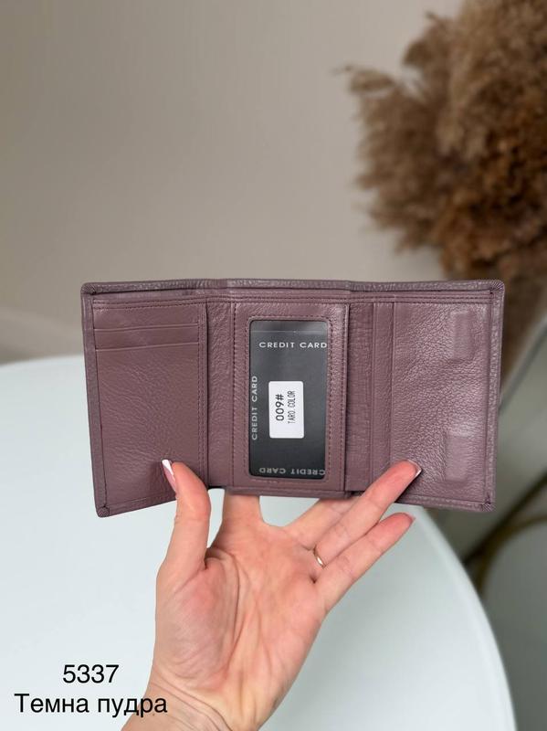 Женский кошелек темно розовый кожаный из натуральной кожи вертикальный маленький с тройной...