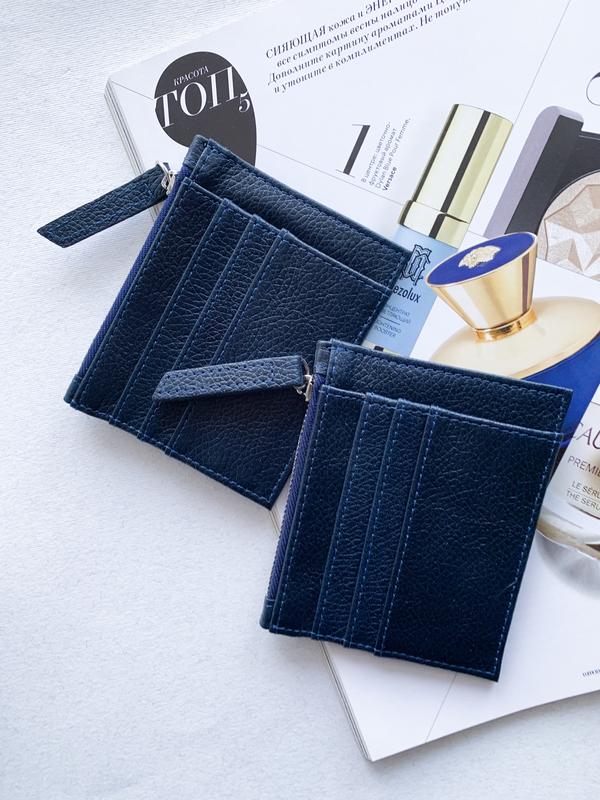 Кошелёк кардхолдер из натуральной текстурной кожи синего цвета