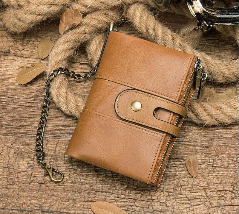 Кошелек кожаный мужской светло-коричневый рыжий на цепочке кэжуал casual стильный винтаж