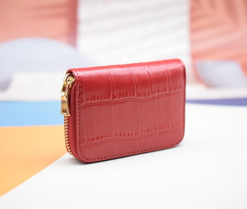 Элегантный красный кожаный кошелек картхолдер на молнии визитница из натуральной кожи