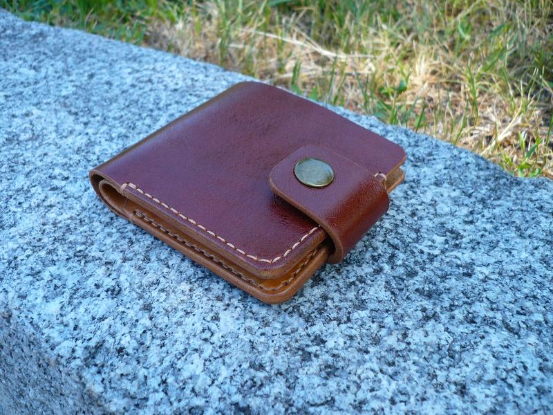 Кошелек бифолд из комбинированной кожи растительного дубления (производство Италия). Внешняя кожа с полуглянцевым лицевым покрытием и легкой фактурой, цвет коричневый-коньяк; внутренняя кожа с матовой гладкой лицевой частью, цвет коричневый-кэмэл. 2 кармана для пластиковых карт и отделение для купюр. Прошитый вощеной нитью galaces 0,55 мм Финишное покрытие: крем kenda farben antiqua super. Врез обработан средством tokonole ( Япония). Размер 110*90 мм Ручная работа. Ценность: 570 грн