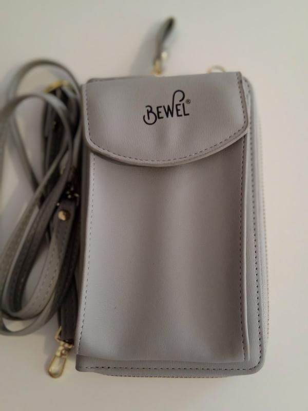 Гаманець з кишенькою для телефону. Всередині два відділення для купюри, і одне на застібки для монет, також 6 відділень під картки. В наявності ремінь через плече