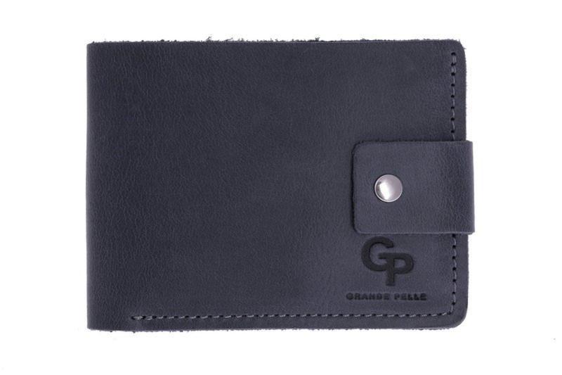 Красивое мужское портмоне 542170 Grande Pelle, синего цвета, Италия. Изделие имеет два отделения для купюр, монетницу, застегивающуюся на кнопку, и отсеки для пластиковых карт. Само портмоне также застегивается при промощи копки на кожаном хлястике. Аксессуар для стильных мужчин!