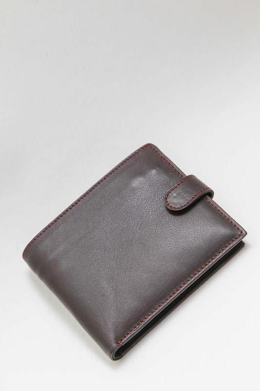 Размеры: 10см х 12см(24 см в развернутом виде) Натуральная кожа коричневого цвета. Полезные отделения для карт и документов. Легкий, удобный, на кнопке, надежно прошитый.