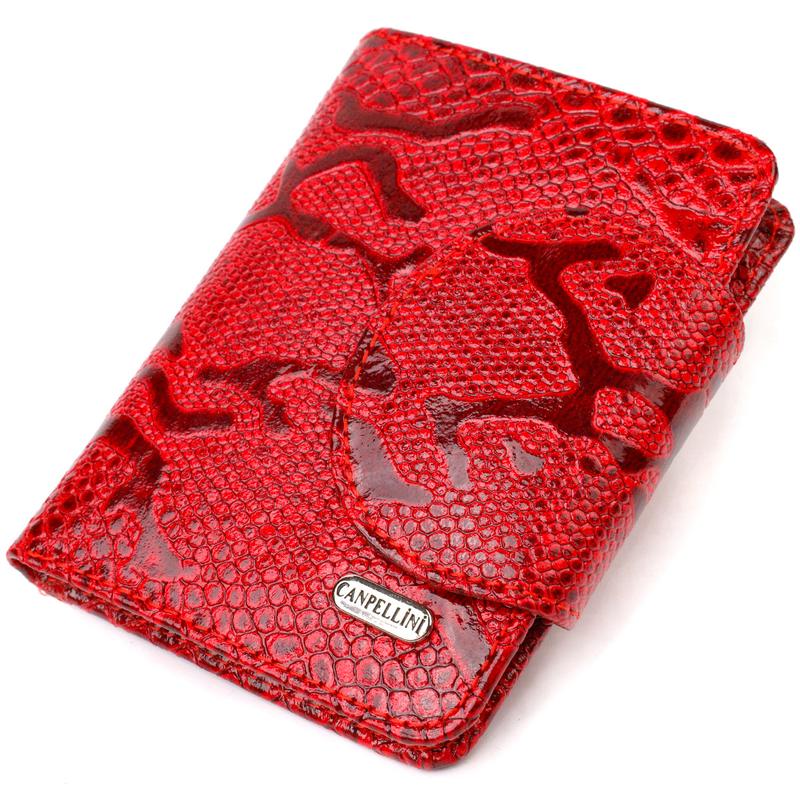Лакированное женское портмоне среднего размера из натуральной кожи с тиснением под змею ca...