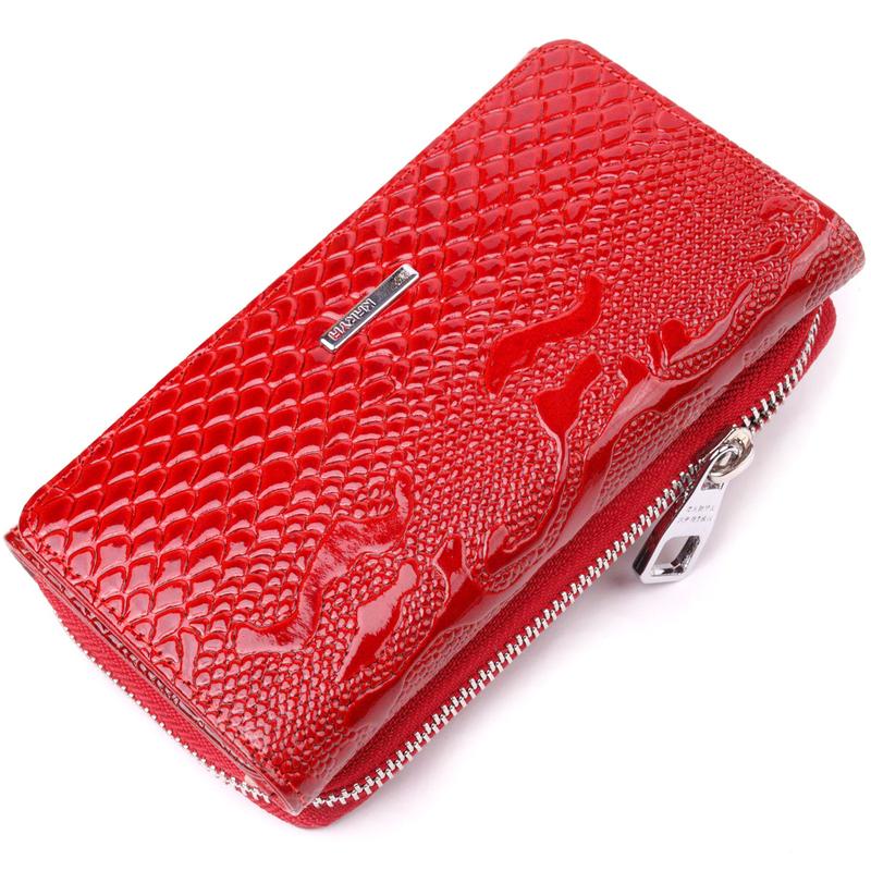Цвет: красный; Материал: натуральная кожа высокого качества; Размер (ШхВхГ, см): 16х9,5х3 см; Страна производитель: Турция. Описание: - глубокое отделение для купюр; - два прилегающих кармана; - восемь ячеек для карт; - два отделения под сеточкой; - закрывается в три сложения на кнопку; - монетница на молнии, снаружи; - упаковано в фирменную коробку. Яркое женское лакированное портмоне в современном дизайне и красивом красном цвете. Изделие выполнено из натуральной кожи высокого качества. Портмоне имеет глубокое отделение для купюр, восемь ячеек для пластиковых карточек, два прилегающих кармана, два отделения под сеточкой и монетницу на молнии снаружи. Закрывается аксессуар на кнопку. Данный аксессуар прекрасно подойдет в качестве подарка и принесет любой женщине исключительную радость.