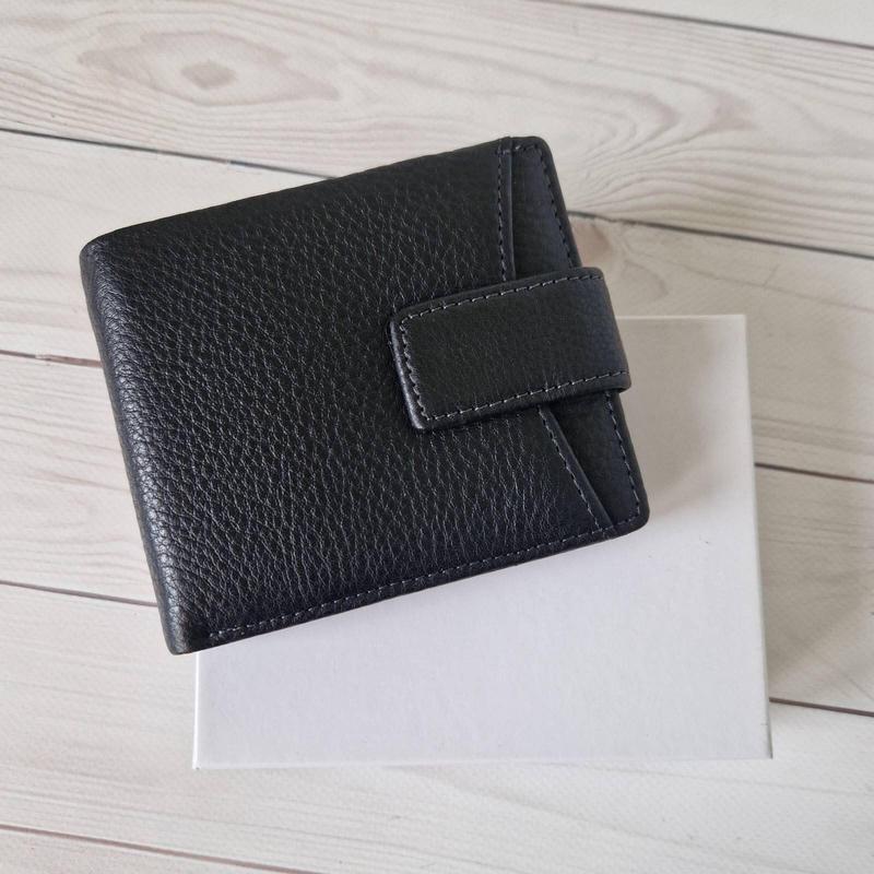 Бумажник с застежкой для мужчин с двойным сложением, отличается уникальным дизайном и удобством в эксплуатации. В данной модели вы сможете разместить все самое необходимое: кредитка, мелочь и банкноты. Для изготовления использована черная натуральная кожа. Особенности 3 кармана для банкнот (одно на молнии); 5 отделения для кредитных карточек; 1 отделение для монет на кнопке. Размеры (ШхВхГ): 12х10х2,5;