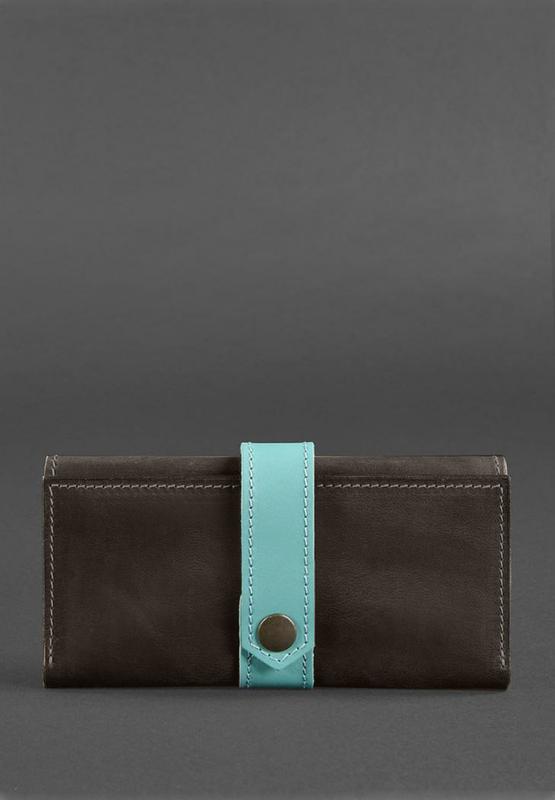 Шкіряне жіноче портмоне 3.0 темно-коричневе з бірюзовим